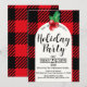 Rustic Holly Berries Watercolor Plaid Holiday Invitation