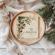 A festive Christmas party design featuring vintage-style holly leaves, bright red berries, and pine greenery against a rustic parchment background. A timeless woodland holiday look that’s both cosy and elegant.