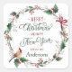 Rustic Holly Berry Wreath with Bird Personalised Square Sticker