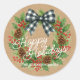 Rustic Holly Wreath White Black Chequered Bow Classic Round Sticker