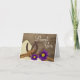 Dark purple daisies and horseshoes inner twined with a rope knot over old country barn wood rustic country thank you card to compliment invitations.