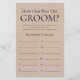 This lovely rustic How Old Was The Groom? bridal shower game sheet is simple and charming - perfect for any shower. This fun and easy game is sure to bring lots of laughter to any shower! Have family and friends send you pictures of the groom at different ages and have them printed. Number them and set them near these game sheets. Simply give a sheet to each guest (don't forget the pens) and let the competition begin! You'll be amazed at how many people really know the ages of the groom. In seconds you can see how your game sheet will look. Simply select Personalise this Template and type in the groom's name.