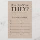 This simple, rustic yet modern LGBTQ How Old Were They? shower game sheet is simple and charming - perfect for any shower celebrating 2 grooms. This fun and easy game is sure to bring lots of laughter to any shower! Have family and friends send you pictures of the grooms at different ages and have them printed. Number them and set them near these game sheets. Simply give a sheet to each guest (don't forget the pens) and let the competition begin! You'll be amazed at how many people really know the ages of the grooms. In seconds you can see how your game sheet will look. Simply select Personalise this Template and type in the grooms' names.