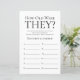 This lovely How Old Were They? bridal shower game sheet is simple and charming - perfect for any shower celebrating 2 grooms. This fun and easy game is sure to bring lots of laughter to any shower! Have family and friends send you pictures of the grooms at different ages and have them printed. Number them and set them near these game sheets. Simply give a sheet to each guest (don't forget the pens) and let the competition begin! You'll be amazed at how many people really know the ages of the grooms. In seconds you can see how your game sheet will look. Simply select Personalise this Template and type in the grooms' names.