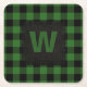 Rustic Hunter Green Black Buffalo Plaid Monogram Square Paper Coaster
