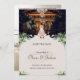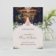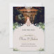 Celebrate your upcoming wedding with this beautifully warm and intimate "Save the Date" card, perfect for cosy, rustic, or candlelit weddings. Featuring a bride and groom under a romantic chandelier in a wood-accented venue, this design exudes elegance and charm. Complemented by soft greenery and gold wedding bands, it's a timeless way to announce your special day.