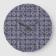Rustic Italian Tiles Azulejo Blue White Geometric Large Clock