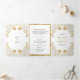 Rustic Ivory Floral Gold Glitter QR Code Wedding Tri-Fold Invitation