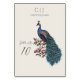 These Rustic Ivory Peacock Wedding Table Numbers feature a hand-drawn blue and teal blue peacock perched on Magnolia branches in full bloom in black ink. Personalise with bride and grooms' monogram, names and table number by clicking on "Personalise this template" on the product page.