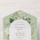 AVAILABLE WITH OR WITHOUT A QR CODE TO SCAN IN THE RSVP AREA. This elegant all-in-one wedding invitation features a romantic watercolor border of ivy, ferns, and lush greenery on a light sage green background. A soft cream oval and classic fonts create the perfect mix of traditional and botanical charm—ideal for garden weddings, spring or summer events, and nature-inspired celebrations. Created by Simply Farmhouse Press.