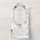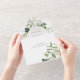 ALSO AVAILABLE WITH A QR CODE TO SCAN IN THE RSVP AREA OR WITH DINNER SELECTION OPTIONS. This design features a soft frame of ivy, ferns, and other greenery around a cream oval. Personalised All-In-One invitations are a unique combination of both a beautifully printed custom invitation with an easy to tear off perforated RSVP postcard. And they are so easy to use! You simply fold, then seal the back flap with the three included clear stickers, and mail. And when your guests receive your custom invite, they just tear the perforated RSVP Card off and drop it back in the mail to you!