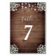 This wedding table number card design features a mason jar vase filled with baby's breath flowers on a rustic wood background accented with string lights. Click the customise button for more flexibility in modifying the text! Variations of this design as well as coordinating products are available in our shop, zazzle.com/store/doodlelulu. Contact us if you need this design applied to a specific product to create your own unique matching item! Thank you so much for viewing a DoodleLulu by 2 june bugs design!