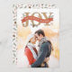 A beautiful holiday photo card featuring a rustic ribbon and kraft joy with pine and berry details.