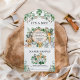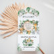 Celebrate the upcoming arrival of your little bundle of joy with this whimsical all-in-one safari-themed baby shower invitation. The design features a group of adorable jungle animals and rustic watercolor greenery