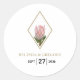 This design features a pink rustic king protea flower. The king protea flower with its green leaves is elegantly framed with a gold diamond colour frame. The king protea flower and its greenery create a rustic floral country garden bush feel. Rustic wedding sticker design with elegant modern elements. Matching wedding invitations and other stationery items are also available.