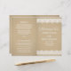 Wedding sheet programs feature "Celebration of Love" in script, a charming illustrated border design of vintage white floral and dotted lace, and a background with a rustic kraft brown paper textured appearance. Personalise the custom text for your bridal party, ceremony information, and thank you message. Note: these text weight paper programs arrive flat and require folding to assemble.