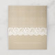Wedding place card features a charming illustrated border design of white floral and dotted lace and a background with a rustic kraft brown paper textured appearance.