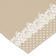 Table runner design features a charming illustrated border design of floral and dotted lace, a custom "Celebration of Love" monogram of the bride and groom names and wedding date, and a background with a neutral and rustic kraft brown colour (can be customised).