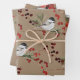Rustic Kraft Black Cap Chickadee Birds & Berries Wrapping Paper Sheet