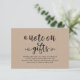 Rustic kraft black script, A note on gifts Enclosure Card