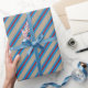 Rustic Kraft Blue Red Wide Stripe Holiday Wrapping Paper