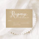 A coordinating RSVP postcard featuring a white calligraphy "Response" header with reply date, guest name line, and attendance options on a warm kraft paper background. The design includes a guest count field for tracking attendance numbers. All text including the reply date is fully editable.