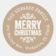 Affordable custom printed round return address stickers personalised with your family name and return address. This rustic modern holiday design features distressed MERRY CHRISTMAS lettering on a faux kraft paper background. Use the design tools to choose any background colour and edit text fonts and colours to further customise your own unique holiday return address labels.