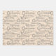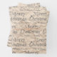 Add a touch of rustic charm beneath your Christmas tree with this simulated distressed kraft texture wrapping sheet assortment with three fanciful grey font typography Merry Christmas designs and templates for you to add a name separately on each sheet for personalised gift wrap that is sure to delight both adults and kids of all ages. The background of each design is a wrinkled and crinkled image of distressed light brown paper, giving each sheet a cohesive kraft look along with the grey text. The chic rustic fonts in grey create a pattern of MERRY CHRISTMAS in a fun mix of fonts for added interest, along with three different text templates sprinkled within the designs so you can personalise your custom Christmas wrapping paper for just one person or for three, exactly as you like it. Printed just for you, this distressed kraft style holiday gift wrap with rustic grey typography will add a stylish farmhouse Christmas décor look to your gifts nestled beneath the Christmas tree.
