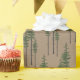 A woodland forest Christmas holiday wrapping paper featuring illustrated green Eastern pine trees in a forest pattern on a brown Kraft colour wrapping paper.