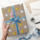 Rustic Kraft Gold Silver Stars Holiday Wrapping Paper