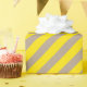 A rustic kraft coloured holiday wrapping paper featuring lemon yellow wide stripes on the diagonal.