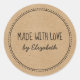 Rustic Kraft Made With Love Handwritten Dotted Classic Round Sticker