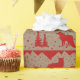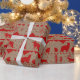 A kraft coloured wrapping paper featuring a Nordic sweater pattern of winter animals in red against a Kraft colour wrapping paper.