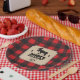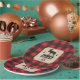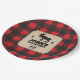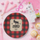 A background of red buffalo plaid contrasts against a kraft paper look panel on this Northwoods themed plate. The panel holds the text and features a moose between two pine trees. The crossed axe makes a custom logo below. Great addition to a birthday, bachelor party, seasonal event, or a buffalo plaid, or lumberjack themed celebration. Available with matching products.