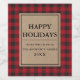 Rustic Kraft Red Buffalo Plaid Happy Holidays Wine Label