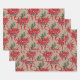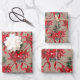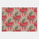 Rustic Kraft Red Poinsettias Ribbons Bows Lattice Wrapping Paper Sheet