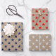 A festive wrapping paper trio sheet set for the Christmas holiday season, thanksgiving or Independence Day USA, featuring red, white and blue stars on a rustic kraft paper background.