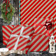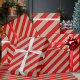 A rustic kraft coloured holiday wrapping paper featuring red wide stripes.