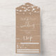 A rustic country brown kraft and white summer glowing string lights in one calligraphy wedding invitation with rsvp, accommodations, details, and more info. With a modern and trendy script, add your initials.