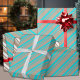 Rustic Kraft Turquoise Aqua Blue Stripes Holiday Wrapping Paper