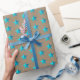 Rustic Kraft Turquoise Blue Stars Wrapping Paper