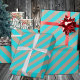 A rustic kraft coloured holiday wrapping paper featuring turquoise blue wide stripes on the diagonal.