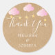 Rustic kraft twinkle twinkle couples baby shower pink thank you, classic round sticker. Designed to coordinate with our Rustic kraft twinkle twinkle baby shower collection. Featuring cute pink clouds and golden stars on strings, on a rustic kraft background, these baby shower stickers are perfect for sealing envelopes and baby shower favours. Add your celebration details in white to create the perfect sticker.
