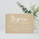 Wedding RSVP postcards feature "Response" in charming white script, custom text that can be personalised, and a background with a rustic kraft brown paper textured appearance. A reply address is included on the back side. Simply add a postage stamp to the side of the card with the reply address and your guests can mail their response back to you as a postcard.