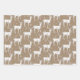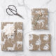 Rustic kraft style wrapping paper trio sheets featuring 3 different white baby doe reindeers surrounded by snowflakes.
