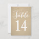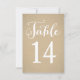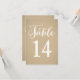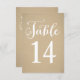 Two sided wedding table number cards feature "Table" in charming white script with number that can be personalised, and a background with a rustic kraft brown paper textured appearance. Personalise and add each number that you need to your shopping cart.