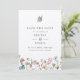 A rustic wedding save the date featuring colourful watercolor wildflowers and a single blue butterfly at the top, on kraft cardstock. Personalise with your details in charcoal.