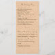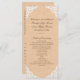 Beautifully illustrated, vintage lace decorates this burlap coloured wedding program.