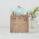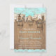 Mason jar baby shower invitation with teal blue lace and rustic wood background and mason jars. This rustic teal blue and brown mason jar baby shower invitation is easily customised for your event by adding your details in the font style and colour, and wording of your choice.