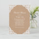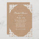 Beautifully illustrated, vintage lace decorates this burlap coloured bridal shower invitation. It is shown on the basic paper; however, I recommend the weight and texture of the linen paper to further enhance that burlap feel. Note: lace is an illustration.